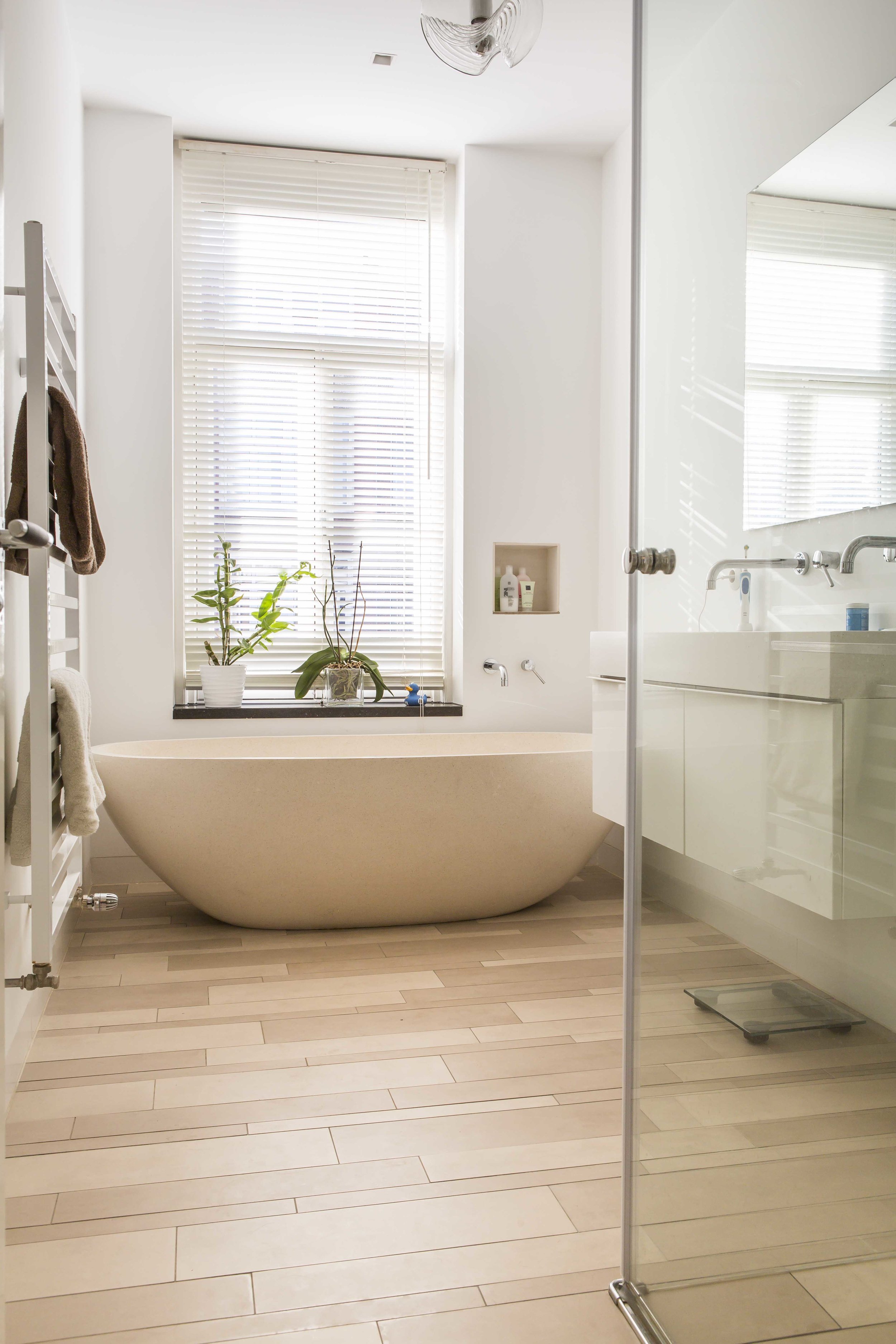 Woonhuis bestaande uit vier woonlagen, gebouwd in 1920. Het huis is oorspronkelijk gebouwd als 2-laags benedenhuis en 2-laags bovenhuis. Later is het benedenhuis gesplitst in twee appartementen, waardoor het huis bij aankoop totaal uit drie appartementen bestond. Tijdens de renovatie zijn de drie appartementen samengevoegd tot één woning. Het pand was bij aankoop in een slechte bouwkundige staat. De woning is intern volledig gestript en vernieuwd met uitzondering van een aantal originele elementen, zoals bijvoorbeeld de ensuite schuifdeuren. Aan de achterzijde van het pand is de beganegrond vloer ongeveer een meter verlaagd, ook is er een grote doorbraak gemaakt. Hierdoor is er een grote, hoge en lichte ruimte aan de tuinzijde gecreëerd, op gelijk niveau met de tuin. Op de zolder- verdieping is de vliering verwijderd en het dak is van buitenaf geïsoleerd. Hierdoor is een hoge ruimte ontstaan met in het zicht de oude houten kapconstructie en het oude houten dakbeschot.